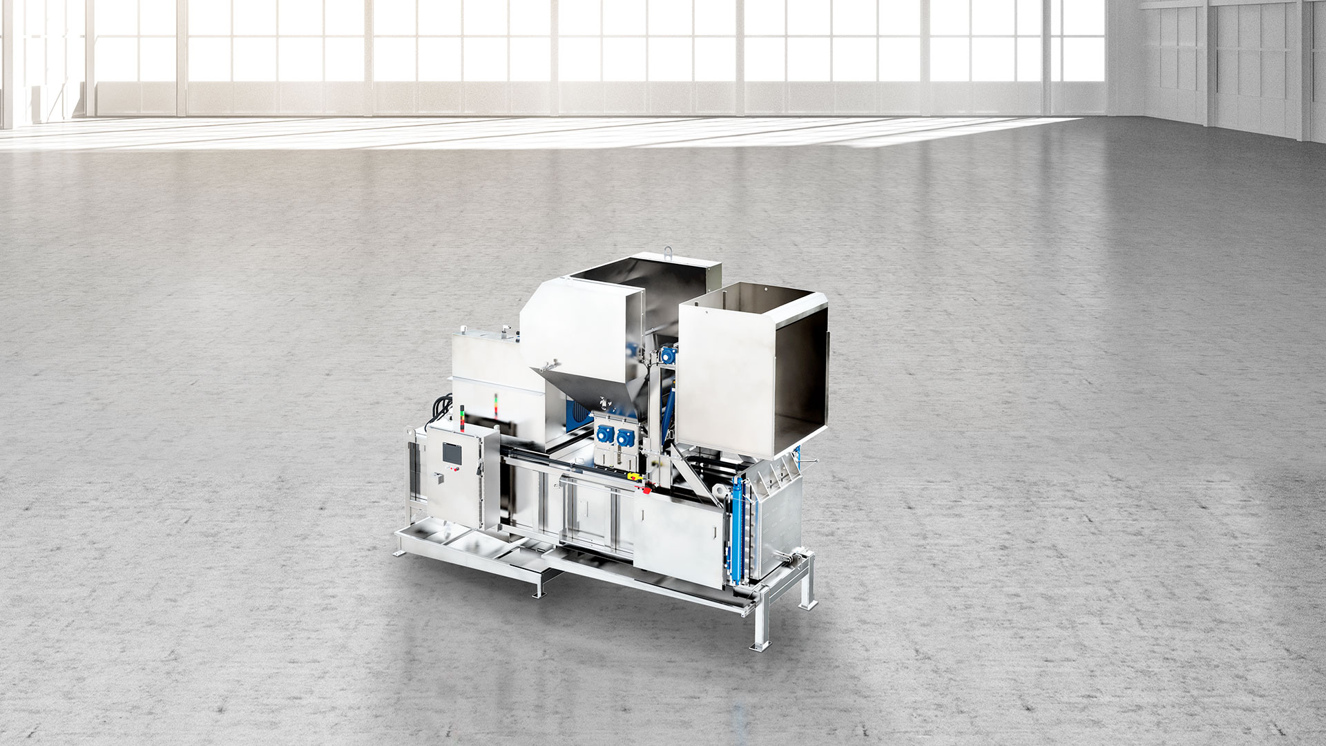 The XCycler is a real all-rounder. It processes particularly large quantities of filled liquid containers made of solid plastic or aluminum. In an integrated system, the XCycler dewaters, shreds and compacts the containers into compact bales in a very confined space.